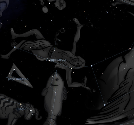 Другие три ярких звездысозвездия Андромеды (Andromeda, And) расположены почти через равные промежутки до созвездия Персея слева от звезды Альфа Андромеды.